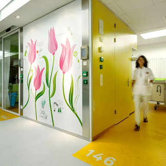5) COLOUR: Use of colour in hospital design has a multitude of uses. Colour can help patients have a sense of orientation – where colour is used to give different hospital areas a sense of place. Also, colour has been known to be associated with mood. Using the right colours in waiting areas, examination rooms, hallways or patient private rooms can have a definite affect on patient motivation and stress levels.
